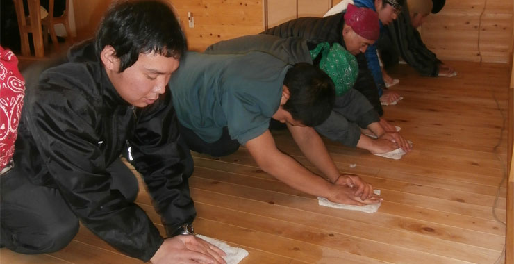いのちの森・水輪で青年達は、清浄な自然環境の中、規則正しく健康的な生活を送っています。早穂理さんを原点とした深く壮大な理念に基づき、塩澤先生ご夫妻を師として、仲間達と切磋琢磨しながら、生活に根差した日々の仕事に地道に取り組んでいます。